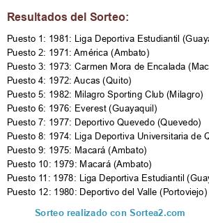 Resultados del sorteo: