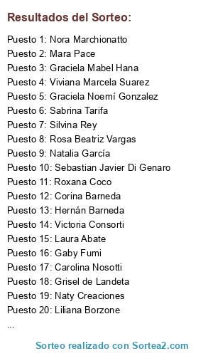Lista de participantes: Laura Abate (2 participaciones), Grisel de Landeta, Sil Passarelli (2 participaciones), Silvina Rey (2 participaciones), Naty Creaciones, Pedro I. Crisafulli, Nora Marchionatto, Nil Degrossi, Victoria Consorti, Liliana Borzone, Patricia Marchionatto, Graciela Noemí Gonzalez (2 participaciones), Sabrina Tarifa, Viviana Marcela Suarez, Graciela Mabel Hana, Mara Pace, Sebastian Javier Di Genaro (2 participaciones), Roxana Coco, Natalia García, Hernán Barneda, Mariela Cáceres, Corina Barneda, Carolina Nosotti, Gaby Fumi, Stella Miranda, Rosa Beatriz Vargas.