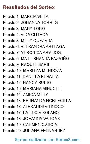 Lista de participantes: MILLY QUEZADA, JULIANA FERNANDEZ, JOHANNA VARGAS, RAQUEL SARIE, NANCY RUBIO, JOHANNA TORRES, MARITZA MENDOZA, FERNANDA NOBLECILLA, AIDA ORTEGA, MARCIA VILLA, AMIGA MILLY, MA FERNANDA PAZMIÑO, ALEXANDRA TINOCO, MARIANA MINUCHE, CARMEN GARCIA, VERONICA ARMIJOS, DANIELA PERALTA, PATRICIA SOLANO, MARY TORO, ALEXANDRA ARTEAGA.
