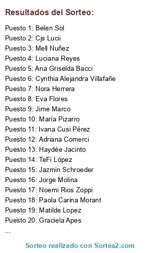 Lista de participantes: Juanchy Valdez, Alicia Lidia Mendoza, Miriam Justiniano, Marisa Lopez, Monica Vadala, Sofia Blanco, Rock-Sana Ramos, Romina Pérez, Noemi Rios Zoppi, Beatriz Borboza, Silvina Cura, Mabel Diaz, Katty Why, Ivone Vieira, Vikhy Barrios, Mariana Correa, Juana Villalba, Romina Flamini Medina, Criss CA, Matilde Lopez, Ana Griselda Bacci, Elizabeth Noemi Torres, Nadia Galeano, Ana Maria Alvarado, Mariano Mariano Mariano, Olga Susana, Lu Rolon, Rox Vargas, Graciela Oropel Rios, Fernando Ariel Vega, Rocío Belén, Tamara Navarro, Mickaa Silva, Cjs Lucii, Marisel Leon, Silvana Moro, Sabrii Baladon, Guillermina Bexiga(2 participaciones), Lilèn Vera, Haydée Jacinto(2 participaciones), Cynthia Alejandra Villafañe, Vanesa Fernández Verón, Yam Ferreira, Noemi Graciela Chiurazz, Lilia Rosa Botas Miyar, Miriam Avilés, Floor Nievas, Patricia Romero, Osvaldo Bove, Monica Ozuna, Norma Guerrero, Mell Nuñez, Sandry Cortes, Bebi Bringas, Adriana Comerci, Paola Pedatella, Belu Melgarejo, Marcela Alejandra Sanese, Carla Luzzi, Maggi Echeverria, Lili Simioni, Gustavo Diaz, Analia Bareiro, Soledad Brixner, Emi Portela, Hector Torres, Marisa Pellizzon Chiaradia(2 participaciones), Mirian Ortiz, Deb Gitman, Alejandra Julian(2 participaciones), Eva Flores, Marcela Ferreira, Josefina Dauz, Belen Sol, Blanca Viera, Ramona Margarita Romero, Jazmin Schroeder, María Pizarro, Soledad Hernandez, Romy Marañon, Maria Ines Morales, Carmen Velazquez, Naty Segura, Jorge Mezzorana, Sol Ramirez, Claudia Albadrin, Jime Marco(3 participaciones), Jonii Fernandez, Carla Golfieri Fornari, Caro Lorefice, Jorge Molina(2 participaciones), Roberto Beltramo, Dany Rivero, Angelica Rosa Ponce, Alejandra Núñez Montenegro, Belén Piantoni, Mabel Palomo, Maria Rosa Gandulfo, Matilde Costa Aldao, Susana Barone(2 participaciones), Stella Vateff, Valentina Zenon, Génesis Ramirez, Graciela Apes(2 participaciones), Nora Herrera(2 participaciones), Vanesa Cordero, Ana Cordero(2 participaciones), Maria Belen Münch, Ivana Cusi Pérez(2 participaciones), Silvia Oreiro (2 participaciones), Fabiana Ramirez (2 participaciones), TeFi López(2 participaciones), Maki Ochoa(2 participaciones), Yani Y'Gus(2 participaciones), Luciana Reyes (2 participaciones), Orlando Francisco Martinez (2 participaciones), Malee Fernandez (2 participaciones), Paola Carina Morant (2 participaciones), Luis Meneses(2 participaciones), Macarena Olivos(2 participaciones), Adriana Comerci compartió tu foto., Camila Rodriguez (2 participaciones), Agustina Goñi(2 participaciones), Majo Petruzzo(2 participaciones), Rosa Castro, Genesis Ramirez, Lorena Mora(2 participaciones), Vivi Escalada(2 participaciones), Sandra Zunino, Olga Beatriz(2 participaciones), Claudia Peretti, Alejandra Torres (2 participaciones), Patricia Avalos(2 participaciones), Matilde López(2 participaciones), Beatriz Quevedo, Carmen Velázquez(2 participaciones), Wendy de Moreno, Nadia Robalo, María Inés Morales(2 participaciones), Gustavo Vaccari, Mayra Manessi, Gime Amaya, Alejandra Garbovetsky, Ana Perelsztein.