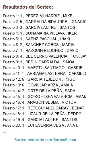 - Puesto 2: 5 , GARRALDA BIDAURRE , IGNACIO