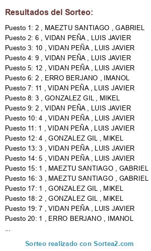 Resultados del sorteo: