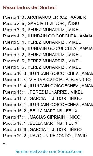 - Puesto 2: 6 , GARCIA TEJEDOR , IÑIGO
