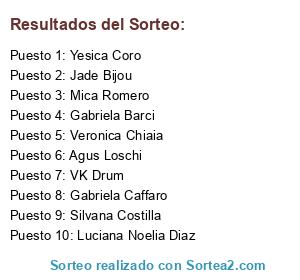 Lista de participantes: Mica Romero (20 participaciones), Yesica Coro (15 participaciones), Silvana Costilla (3 participaciones), Agus Loschi (5 participaciones), Gabriela Barci (5 participaciones), Veronica Chiaia (5 participaciones), Gabriela Caffaro (2 participaciones), Jade Bijou (3 participaciones), VK Drum, Luciana Noelia Diaz , Luciana Noelia Diaz.
