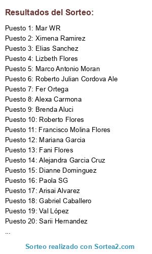 Lista de participantes: Daniel Martinez Glez, Danni Betanzos, Alejandra Garcia, Sherazada Garcia, Fani Flores, Mary Gonzalez, Gabriel Caballero, Alicia Aguilar, Elias Sanchez, Ruben Juarez Millan, Angi'e Itzel, Kenny Del Real, Julio Ubaldo, Valadez Angel Alfredo, Antonio Cruz Merino, Juan Fernando Islas Cerecer, David Ramos Negrete, Bren Flores, Azzul Curiel, Irvin Torres, Brenda Aluci, Jesus Kie's, Alvaro Perez Palacios, Francisco Molina Flores, Salomón Tellez, Olivert Vallex, Gael Gonzo Reyes, Lizbeth Flores, Ximena Ramirez, Gaby Conde, Saul Cole Garcia, Joseph Perez, Jössëlïn Ü Alönsö, Abril GV, Nayeli Reyes, Lizeeth Munguia, Sarii Hernandez, Jonathan Gonzalez, Andrea RL, Estefani VC, Dianne Dominguez, Jaque GS, Grecia Garcia, Carlos Saúl León Ramírez, Kary Jordán, Mari Flores, Marco Antonio Moran, Victor Hugo, Mar WR, Benjamin Pluma, Mariana Garcia, Vane Rivera López, Liz Alonso, Lupitha Ü Sanchez, Jireh Tome, Cecilia Pérez, Miguel De La Cruz Romero, Ulises Ortega Garcia, Astrid Perez, Mickey Frank, Liz Hernández, Grissel T. Gonzalez, Brandon Damián Marín, Jose Luis Cortes, Antony Jajr, Dylan De Martino, Luis de la Calleja, Angel Aguila, Xochitl Rodriguez, Cris Mtz Morales, Angélica Pérez, Asslyn Mendöza, Abigail Makkonen, Midori Animas, Fer Pineda, Val López, Michel Aburto, Emy Hernández, Montse Avila, Arisai Alvarez, Alexa Isaza, Fer Ortega, Paola SG, Karla Garcia, Ferr PRalv, Jocksan Rendon HC, Alexa Carmona, Roberto Flores, Vanessa Domínguez, Jocelyn Muñoz, Feer Alejos, Emily Ruiz, JuarezFeri Mendieta, Melii Orduña, Alejandra Garcia Cruz, Roberto Julian Cordova Ale, RomeroKarime Garcia, .