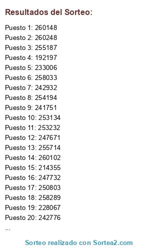 Lista de participantes: Sorteo realizado sobre un fichero que contiene 222 participantes.