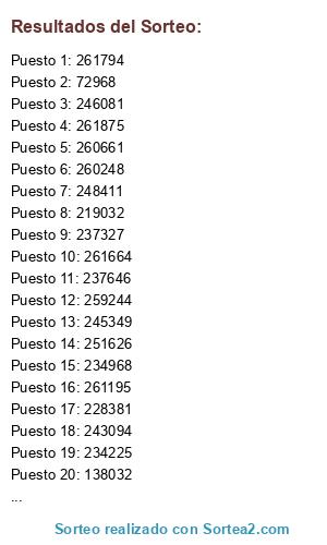 Lista de participantes: Sorteo realizado sobre un fichero que contiene 126 participantes.