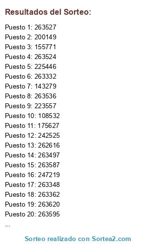 Lista de participantes: Sorteo realizado sobre un fichero que contiene 263 participantes.