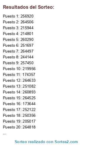 Lista de participantes: Sorteo realizado sobre un fichero que contiene 235 participantes.