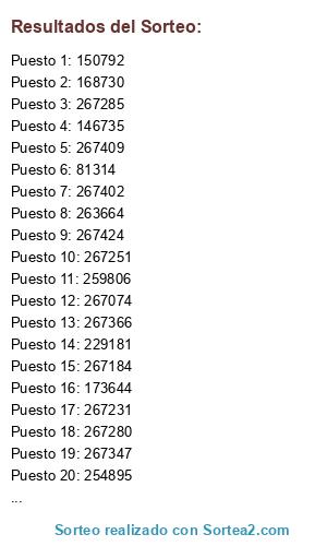 Este sorteo ha sido certificado por Sortea2. Sortea2 garantiza que: