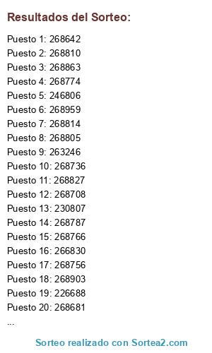 Este sorteo ha sido certificado por Sortea2. Sortea2 garantiza que: