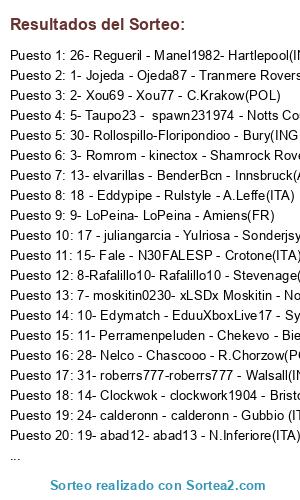 - 26- Regueril - Manel1982- Hartlepool(ING) - 1- Jojeda - Ojeda87 - Tranmere Rovers(ING)