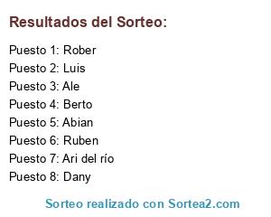 Lista de participantes: Berto, Abian, Ruben, Ari del río, Ale, Luis, Rober, Dany.