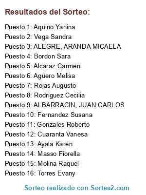 Lista de participantes: Gonzales Roberto, Agüero Melisa, Masso Fiorella, Alcaraz Carmen, Aquino Yanina, Cuaranta Vanesa, ALBARRACIN, JUAN CARLOS, Molina Raquel, ALEGRE, ARANDA MICAELA, Fernandez Susana, Bordon Sara, Vega Sandra, Torres Evany, Rodriguez Cecilia, Rojas Augusto, Ayala Karen.