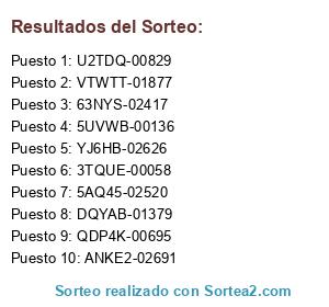 Este sorteo ha sido certificado por Sortea2. Sortea2 garantiza que: