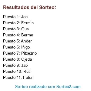 Resultados del sorteo: