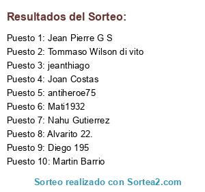 Lista de participantes: antiheroe75, Martin Barrio, jeanthiago, Jean Pierre G S, Alvarito 22., Tommaso Wilson di vito, Diego 195, Joan Costas, Mati1932, Nahu Gutierrez.