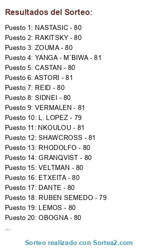 Tipo de sorteo: Jugadores de fútbol