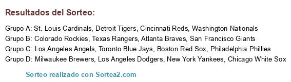 Lista de participantes: Atlanta Braves, Boston Red Sox, Chicago White Sox, Cincinnati Reds, Colorado Rockies, Detroit Tigers, Los Angeles Angels, Los Angeles Dodgers, Milwaukee Brewers, New York Yankees, Philadelphia Phillies, San Francisco Giants, St. Louis Cardinals, Texas Rangers, Toronto Blue Jays, Washington Nationals.