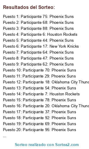 - Puesto 1: Participante 75: Phoenix Suns