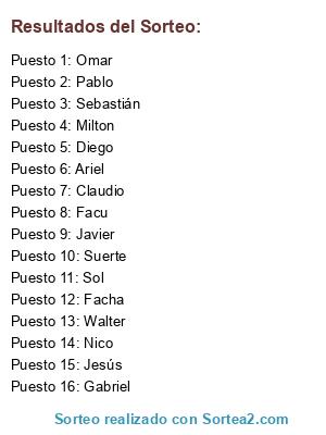Resultados del sorteo: