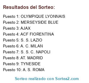 Lista de participantes: AT. MADRID, MERSEYSIDE BLUE, TYNESIDE, OLYMPIQUE LYONNAIS, ACF FIORENTINA, AJAX, A. C. MILAN, S. S. LAZIO, S. S. C. NAPOLI, A. S. ROMA.