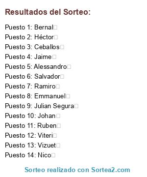 Lista de participantes: Viteri✅, Johan✅, Emmanuel✅, Alessandro✅, Julian Segura✅, Nico✅, Ramiro✅, Salvador✅, Jaime✅, Ceballos✅, Vizuet✅, Héctor✅, Ruben✅, Bernal✅.