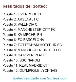 Lista de participantes: CSD COLO-COLO, ANGERS SCO, AL SADD SC, REAL MADRID CF, MANCHESTER CITY FC, OLYMPIQUE LYONNAIS, KV MECHELEN, FC BARCELONA, AC FIORENTINA, YOKOHAMA F. MARINOS, REAL ZARAGOZA, C. ATLÉTICO MINEIRO.