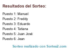 Lista de participantes: Jean, Freddy, Tatiana, Eduardo, Manuel, Juan José.