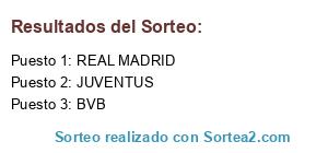Lista de participantes: REAL MADRID, BVB, JUVENTUS.
