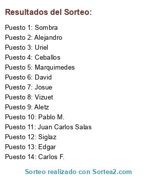 Lista de participantes: Marquimedes, Ceballos, Uriel, Alejandro, David, Carlos F., Josue, Sombra, Siglaz, Pablo M., Aletz, Edgar, Vizuet, Juan Carlos Salas.