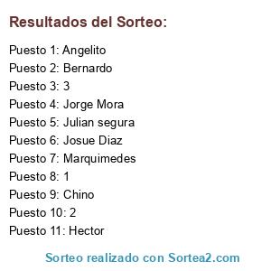 Lista de participantes: Chino, Julian segura, Marquimedes, Bernardo, Hector, Jorge Mora, Josue Diaz, Angelito Fernando, 1, 2, 3.