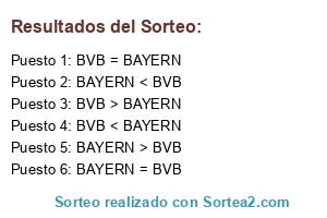 Lista de participantes: BVB > BAYERN, BVB < BAYERN, BVB = BAYERN, BAYERN = BVB, BAYERN > BVB, BAYERN < BVB.