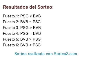 Lista de participantes: BVB > PSG, PSG > BVB, BVB = PSG, PSG = BVB, BVB < PSG, PSG < BVB.