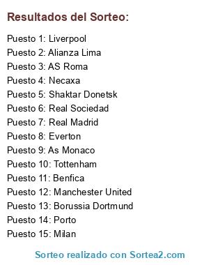 Resultados del sorteo: