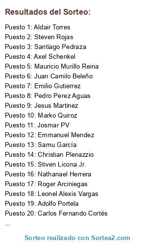 Resultados del sorteo: