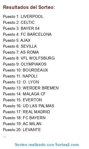 Resultados del sorteo: