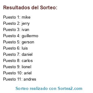 Lista de participantes: carlos, guillermo, mike, ariel, lionel, andres, ivan, gerson, jerry, daniel, luis.