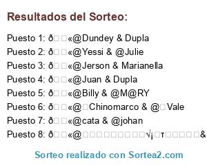 Lista de participantes: 👫@Chinomarco & @Vale, 👫@Billy & @M@RY, 👫@cata & @johan, 👫@Yessi & @Julie, 👫@Dundey & Dupla, 👫@Jerson & Marianella, 👫@Juan & Dupla, 👫@☯︎シ︎ɧนɢಠ√¡૮τಠ૨༆✰& @✰❣︎ꪜ૯૨ᴏ́ท¡૮ล❀ꨄ︎.