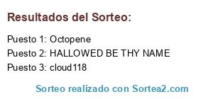 Lista de participantes: Seasons, Ashtyr, cepo, alexjp82, Alphos2000, Nojamat, SuperHomer, arbils, Octopene, neo_g, cloud118, ZaRMaN, HALLOWED BE THY NAME, aton, fifolas, Bayonetta, Wiilex, xugaox, LF9419, HIDEKI, ParkDown, sircharles, txejo, Genesis105, Realdiox, sydney_lostarot, KalEL1988, KiRa_13.