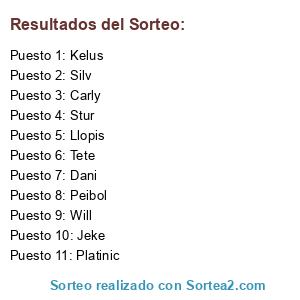 Lista de participantes: Platinic, Llopis, Tete, Jeke, Kelus, Silv, Carly, Stur, Will, Dani, Peibol.