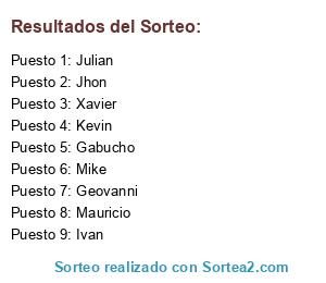 Lista de participantes: Kevin, Gabucho, Julian, Mauricio, Ivan, Geovanni, Jhon, Xavier, Mike.