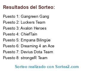 Lista de participantes: Empana Bilingüe, Dreaming 4 an Ace, Gangreen Gang, Luckers Team, strongeR Team, Avalon Heroes, ChiefTain, Devius Dota Team.