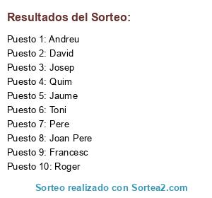 Lista de participantes: Roger, Jaume, Andreu, Toni, Quim, Josep, Joan Pere, Pere, Francesc, David.