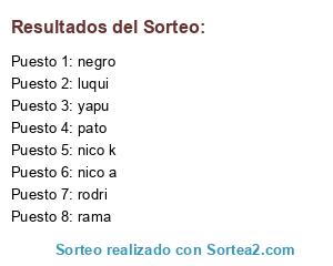Lista de participantes: negro, rama, nico k, nico a, yapu, luqui, rodri, pato.