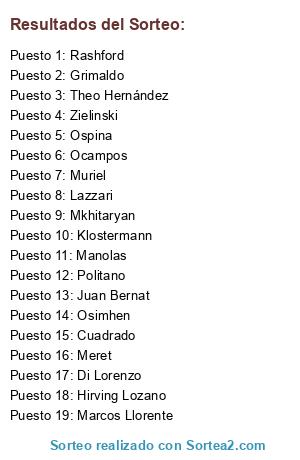 Lista de participantes: Ospina, Meret, Theo Hernández, Cuadrado, Manolas, Grimaldo, Juan Bernat, Lazzari, Klostermann, Di Lorenzo, Marcos Llorente, Rashford, Politano, Zielinski, Ocampos, Mkhitaryan, Muriel, Hirving Lozano, Osimhen.