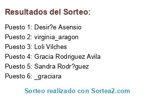 Lista de participantes: Alicia Orta, Gracia Rodriguez Avila, Sandra Rodr?guez, Mar?a Rami, Cristina Conde, Reyes Toca, Loli Vilches, NM Lara, Desir?e Asensio, Rosi Villegas, ruthfabra, andreinaglezo, virginia_aragon, _graciara, anatensan, tizas_decolores, pilaradamuz, @virginia_aragon, @cloefa76.