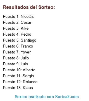 Resultados del sorteo: