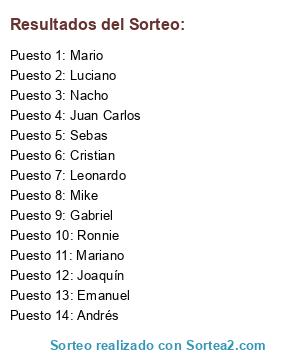 Lista de participantes: Gabriel, Mariano, Leonardo, Joaquín, Ronnie, Juan Carlos, Andrés, Mario, Emanuel, Luciano, Cristian, Mike, Sebas, Nacho.