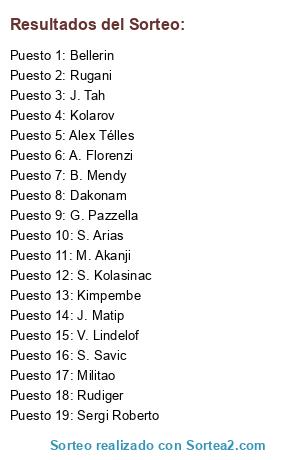 Lista de participantes: J. Tah, Kolarov, J. Matip, Sergi Roberto, S. Savic, S. Arias, G. Pazzella, A. Florenzi, S. Kolasinac, Alex Télles, B. Mendy, Bellerin, Rugani, Kimpembe, Rudiger, Dakonam, V. Lindelof, M. Akanji, Militao.